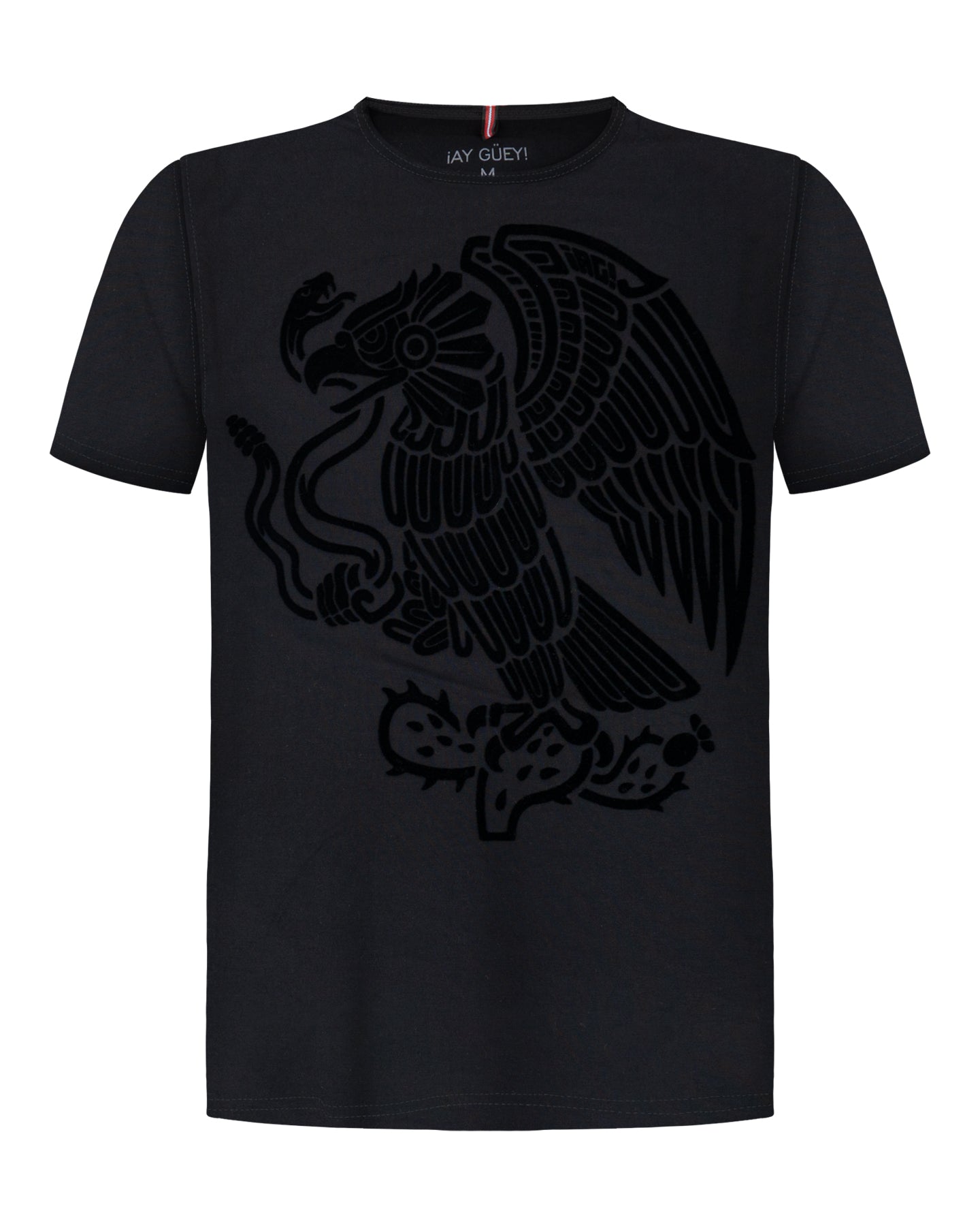 Playera estampada con Flock negro sobre negro para hombre - Modelo EL SÍMBOLO