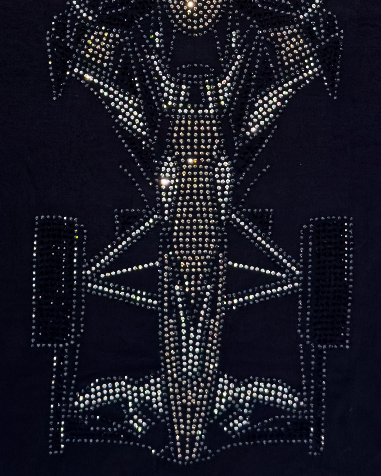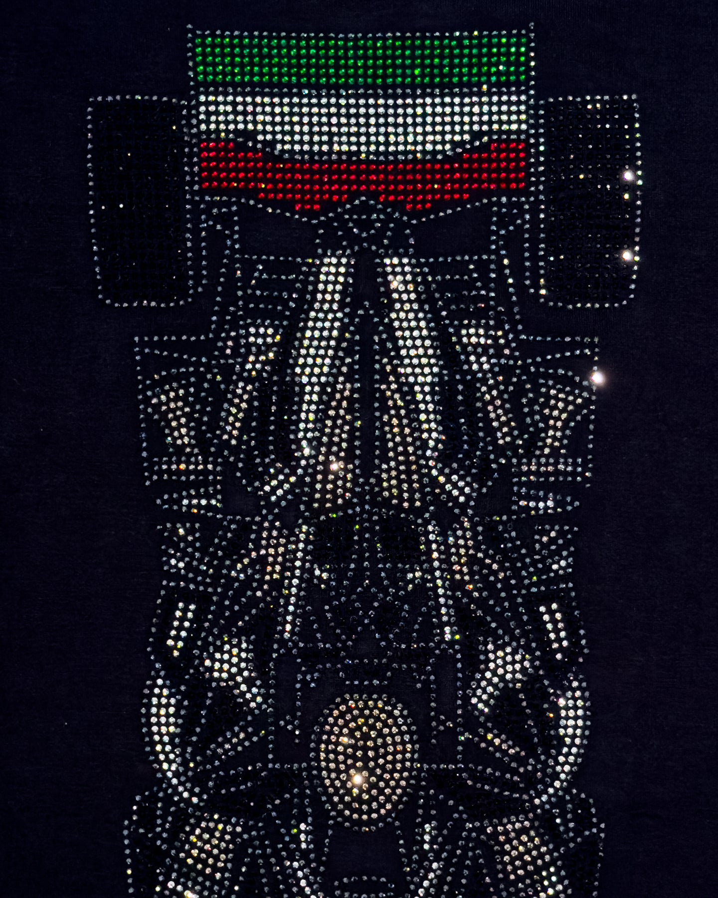 ¡Prepárate para arrancar miradas con nuestra playera Fórmula PDS! Este diseño exclusivo te sumerge en el mundo de las carreras con un toque de brillo y distinción. La silueta de un auto de Fórmula 1 se redefine con miles de cuentas de pedrería, cada una meticulosamente colocada para recrear la emoción y la precisión de la alta velocidad.