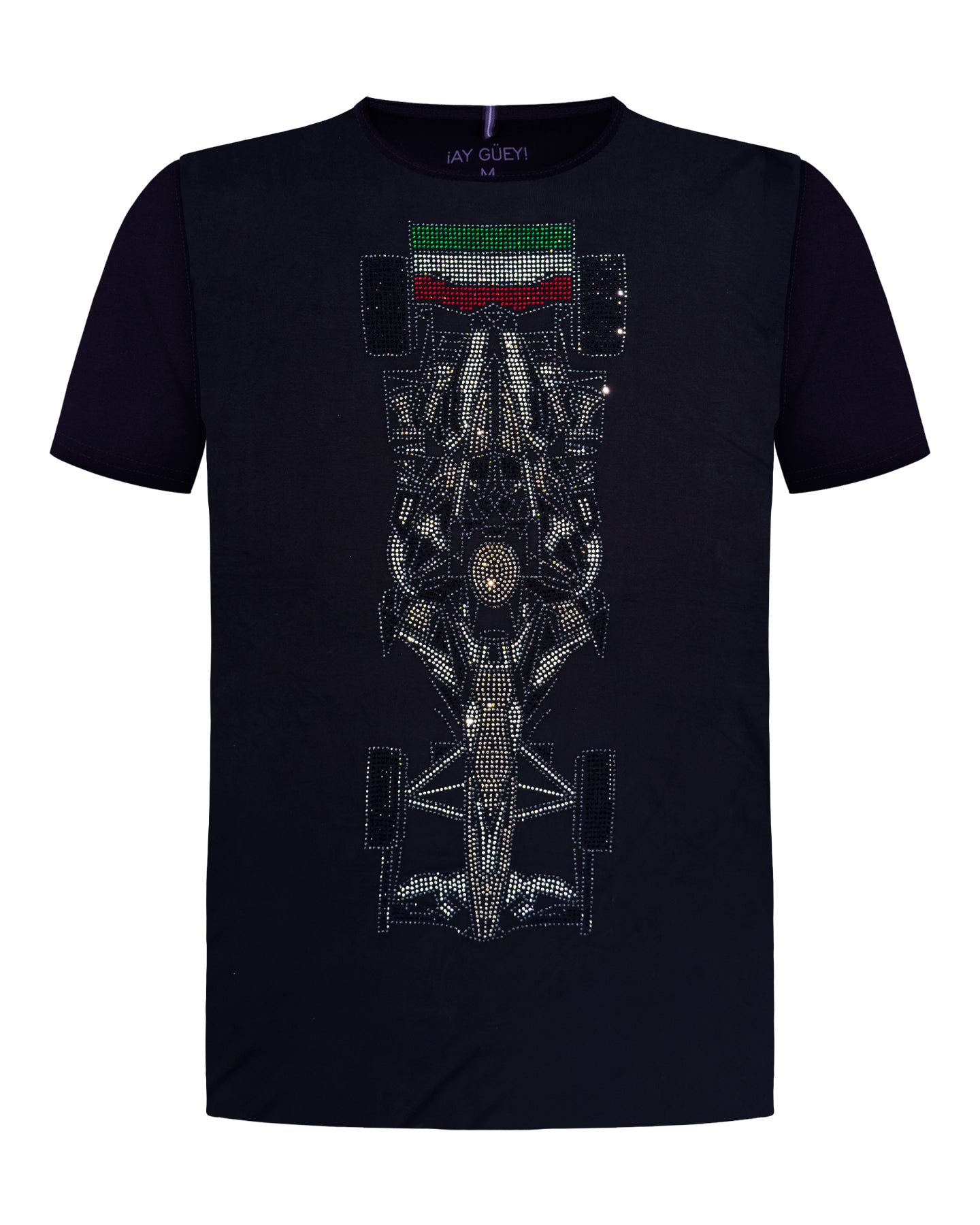 Playera con aplicación de pedrería para hombre - Modelo Fórmula PDS