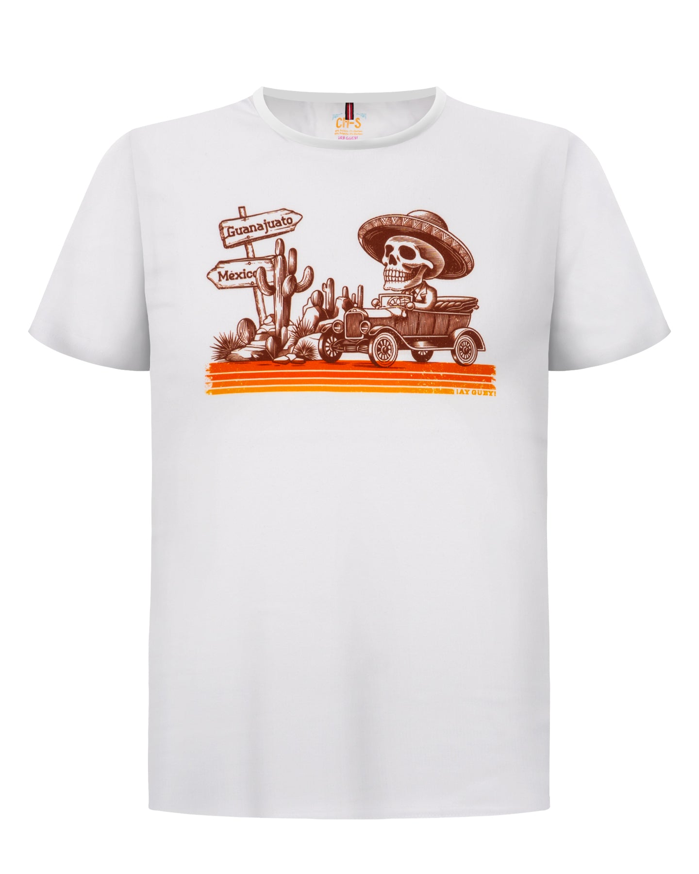 Playera blanca con estampado sublimado para hombre - Modelo GTO