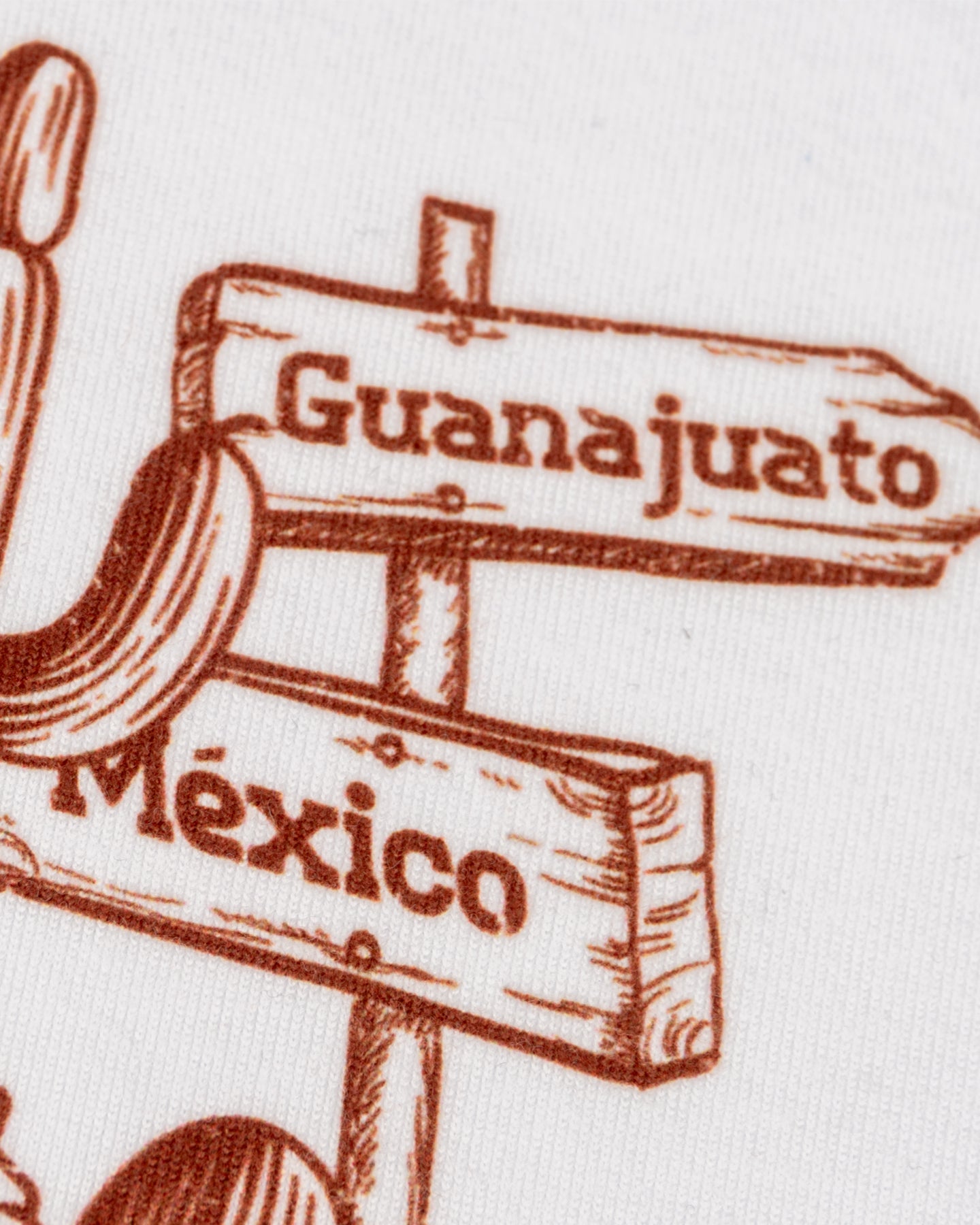 La playera GTO (Guanajuato) es una pieza de estilo que celebra el viaje y la tradición mexicana con un toque de humor sutil. Sobre una camiseta blanca de corte clásico. Con gráfico estampado en tonos sepia (café y naranja), imitando la textura de un boceto dibujado a mano. Una playera que captura la esencia aventurera y el orgullo por el Bajío mexicano.