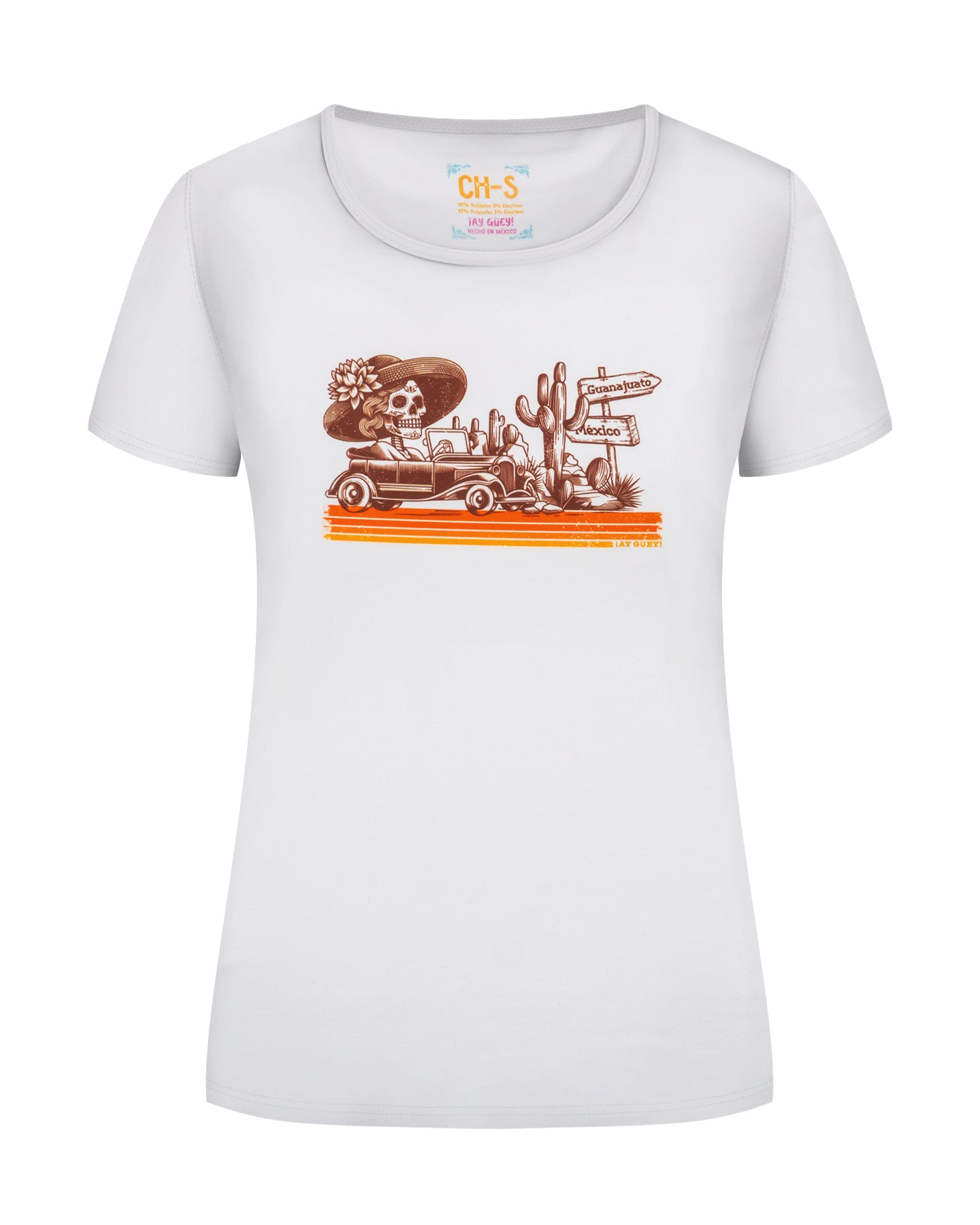 Playera blanca con estampado sublimado para mujer - Modelo GTO