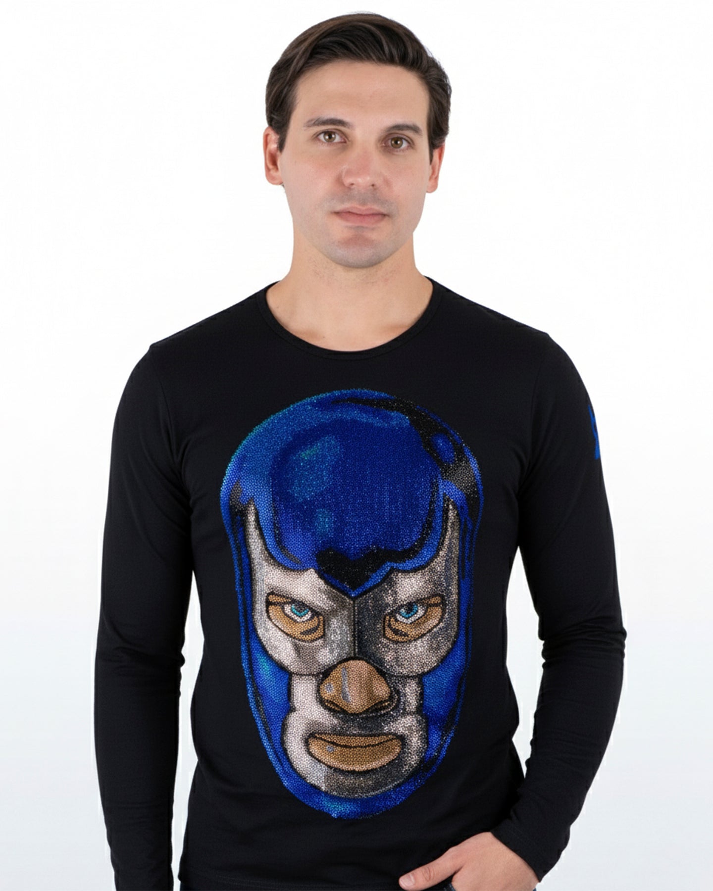 Sé parte de la leyenda. Esta playera exclusiva, fruto de la colaboración con el icónico Blue Demon Jr., rinde homenaje a una trayectoria inigualable. Viste con orgullo los colores de un mito de la lucha libre mexicana. ¡El legado azul vive en ti!