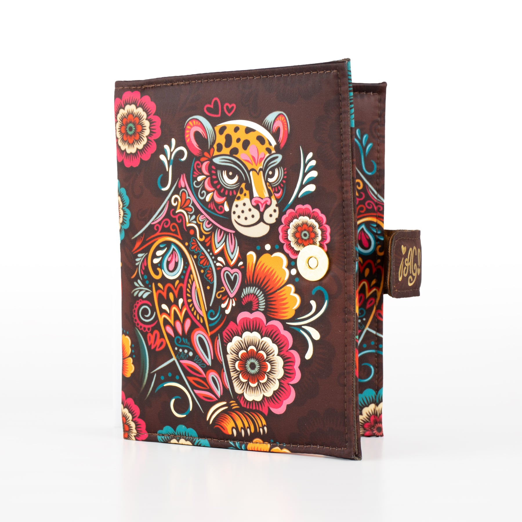 Porta Pasaporte de tela para mujer color marrón - Colección AMIGAS POR SIEMPRE