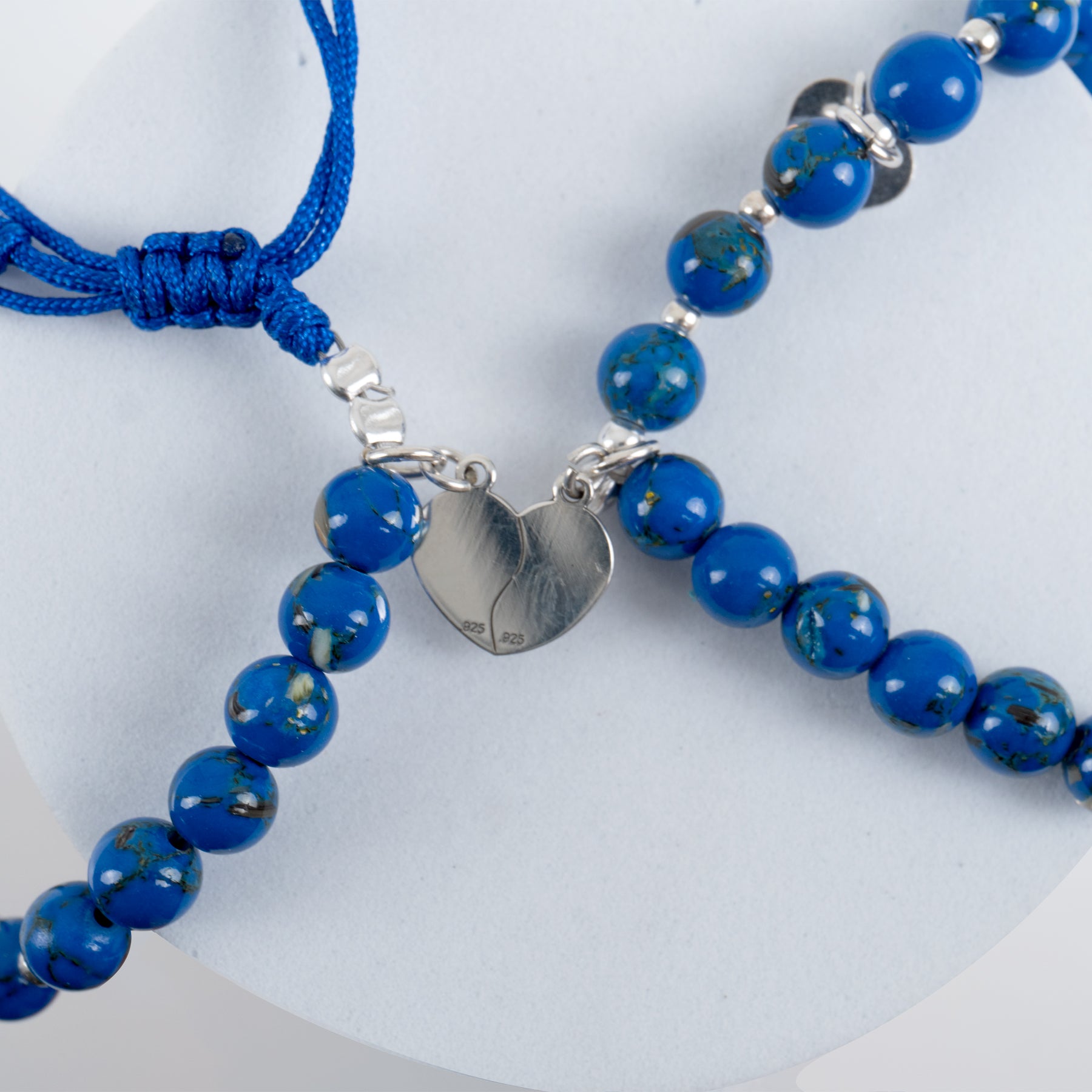 ¨?Demuestra tu amor incondicional con esta pulsera en pareja! Hechas con turqueza azul y un corazón de plata mexicana 925 ley, simbolizan el v??nculo ??nico entre dos seres.