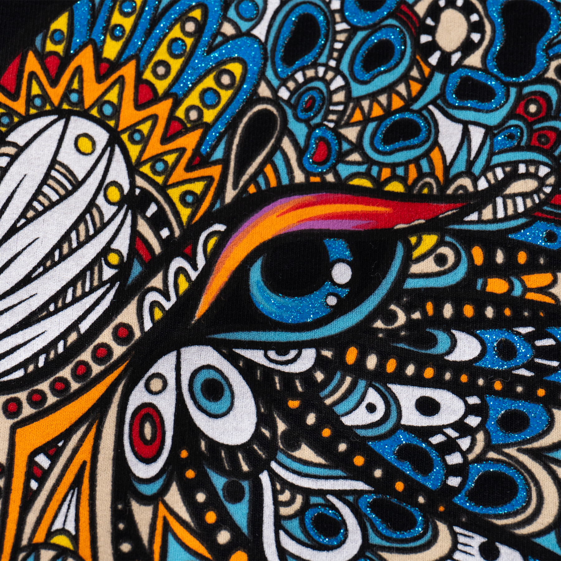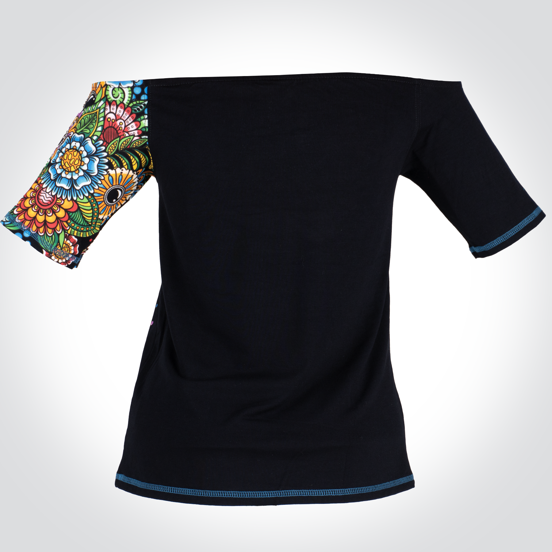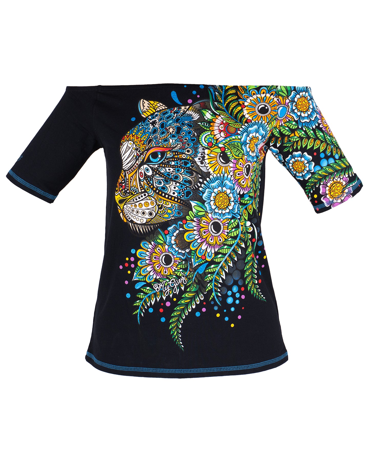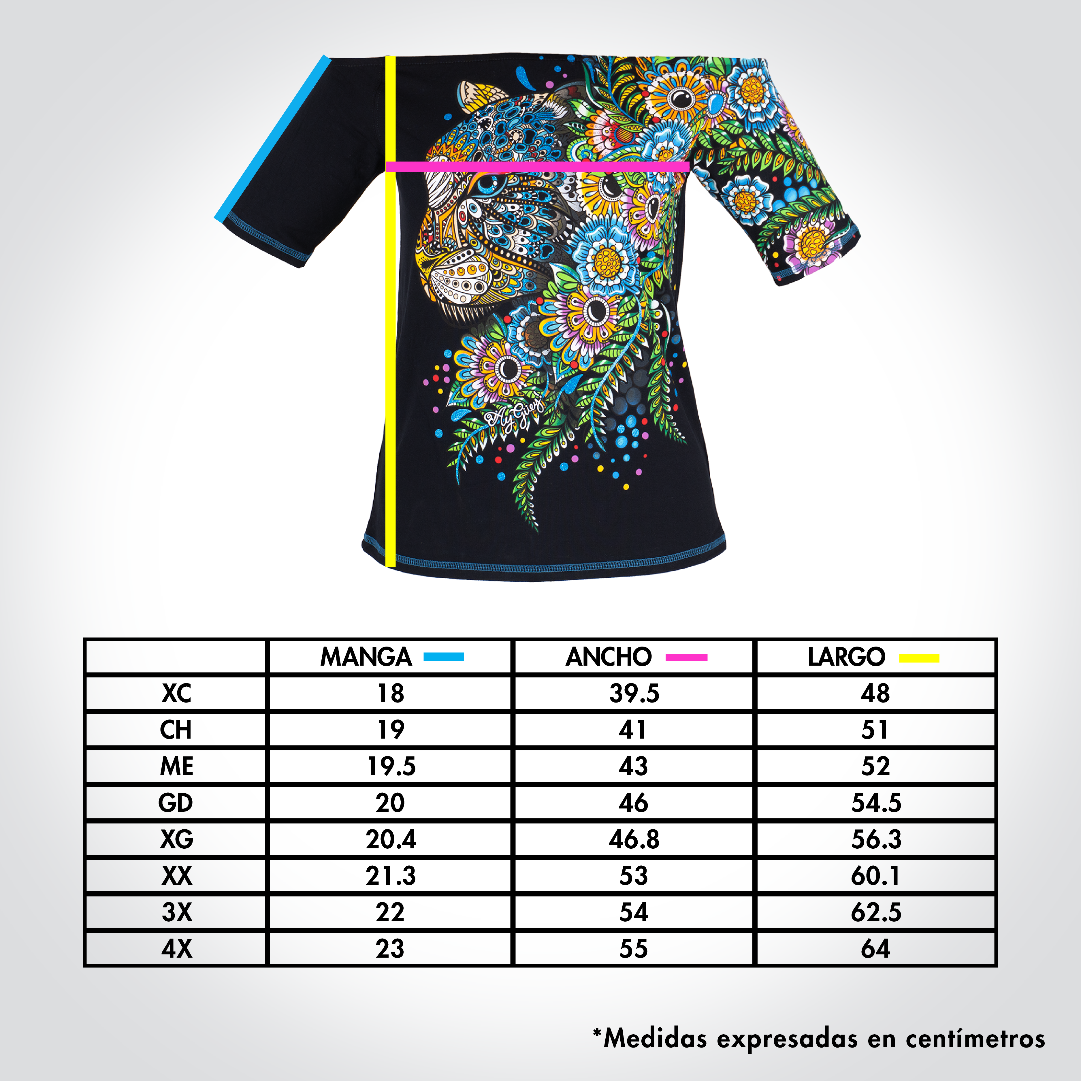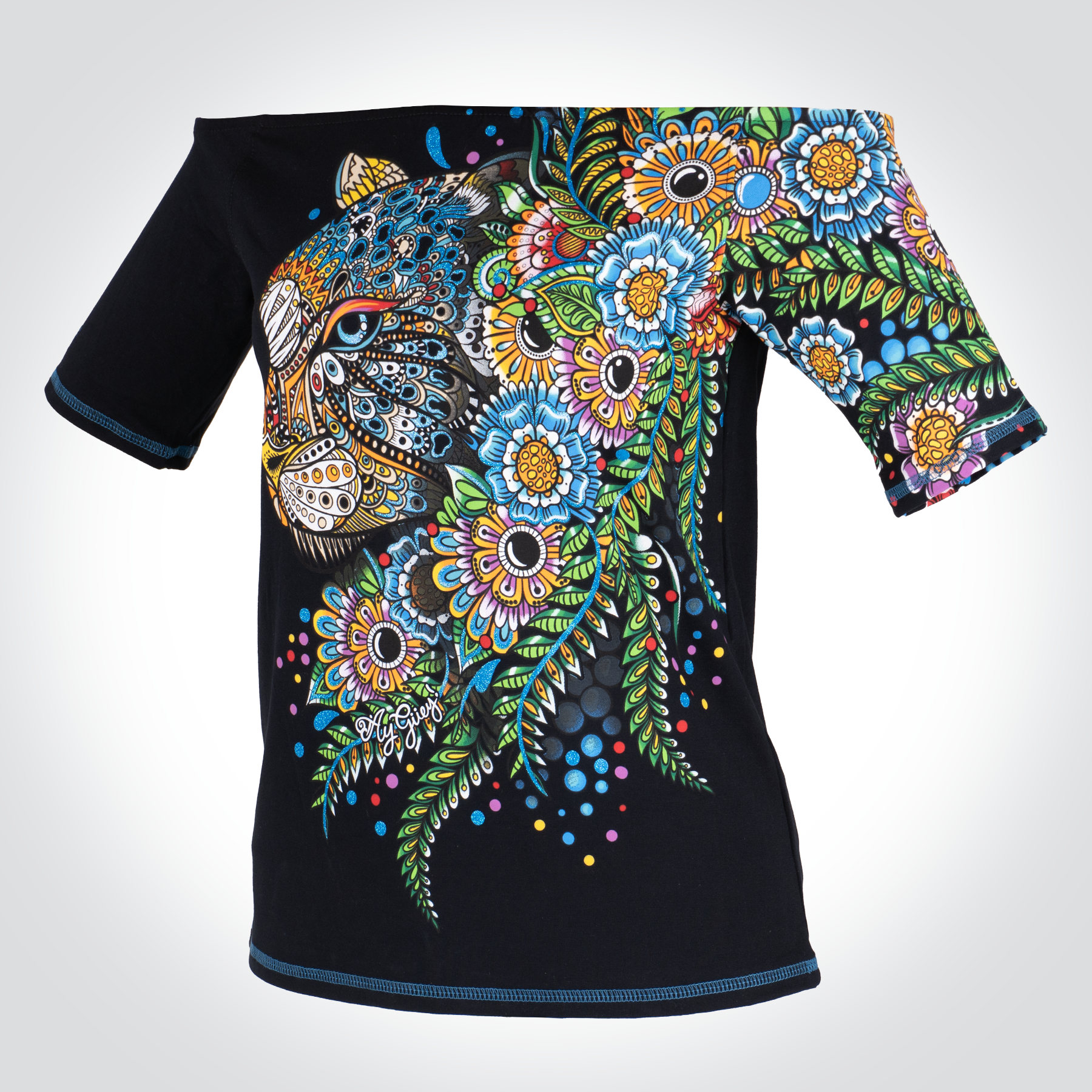 Diseño inspirado en el emblemático jaguar su belleza y estilo decorado a la ¡Ay Güey! con motivos florales que se expanden por toda la prenda.